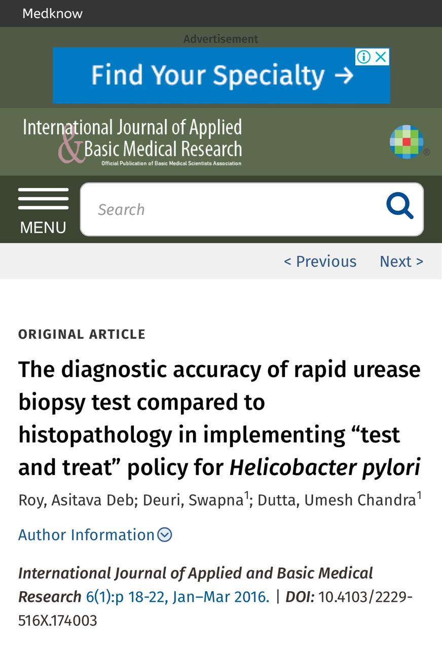 The diagnostic accuracy of rapid urease biopsy test compared to histopathology in implementing “test and treat” policy for Helicobacter pylori